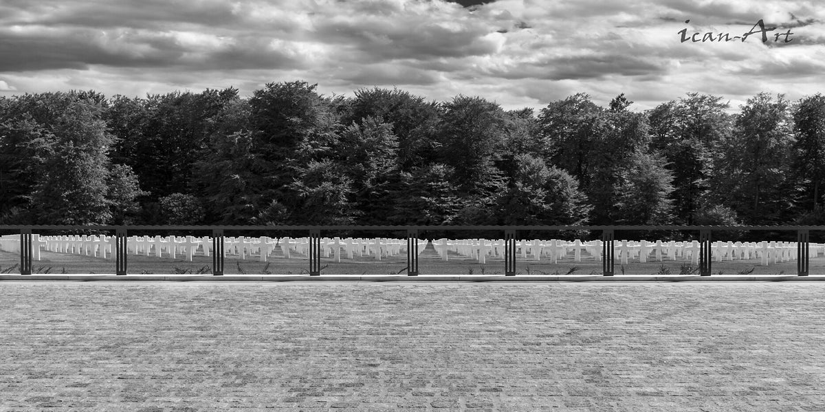 In Sandweiler, Luxembourg, there is the most striking scène one can imagine. On one side there is the Luxembourg American Cemetery and Memorial, where thousands of American soldiers who fell in WWII are buried. General Patton is buried there as well. It's a typical American war cemetery with the many white crosses as they are found in several spaces in the world.