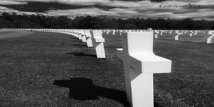 The American Cemetery was tight, filled with pride and very well maintained. No flaws, everything very neat. There were some tourists visiting the grave of General Patton. The white headstones reflected the warm July sun brightly, giving the whole scene an almost heavenly appearance.